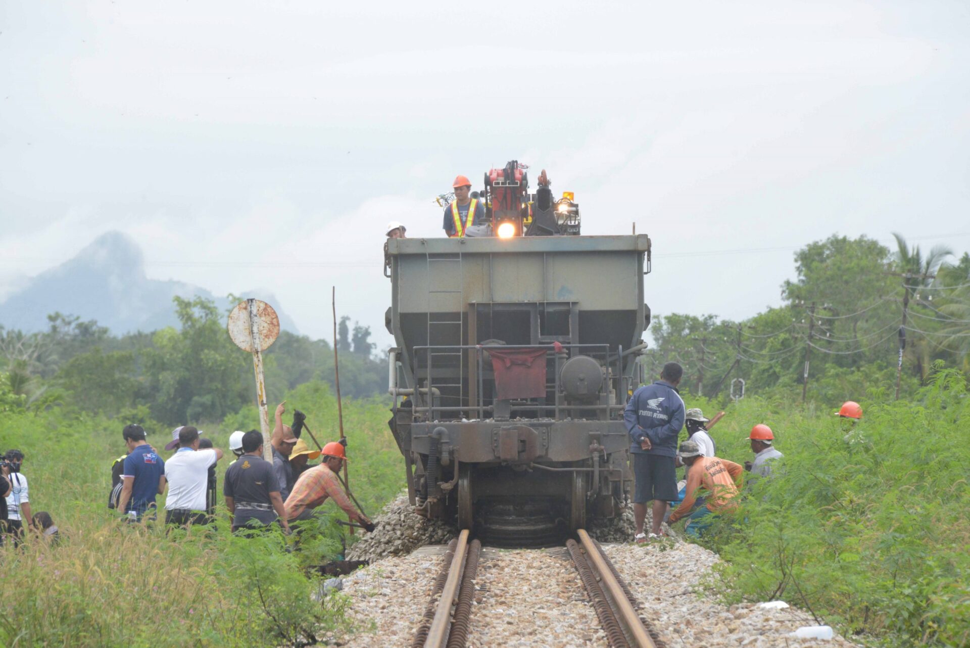 วันนี้ (6 ธ.ค.) เจ้าหน้าที่ของการรถไฟฯ ประมาณ 50 นาย นำเครื่องจักรกลหนักและรถอัดหินจากหน่วยซ่อมบำรุงทางหนักของศูนย์ชุมพรและศูนย์หาดใหญ่ เร่งซ่อมทางรถไฟในพื้นที่บ้านปากคลอง หมู่ 1 ต.มะกอกเหนือ อ.ควนขนุน จ.พัทลุง ซึ่งถูกน้ำกัดเซาะและพัดหินรองหมอนรถไฟหายไปจำนวนมาก ระยะทาง 1 กม. และยังมีทางขาด 16 จุด รวมความยาวเสียหายประมาณ 159 เมตร หลังประสบปัญหาน้ำท่วมเมื่อวานนี้ (5 ธ.ค.) และระดับน้ำลดลงแล้ว