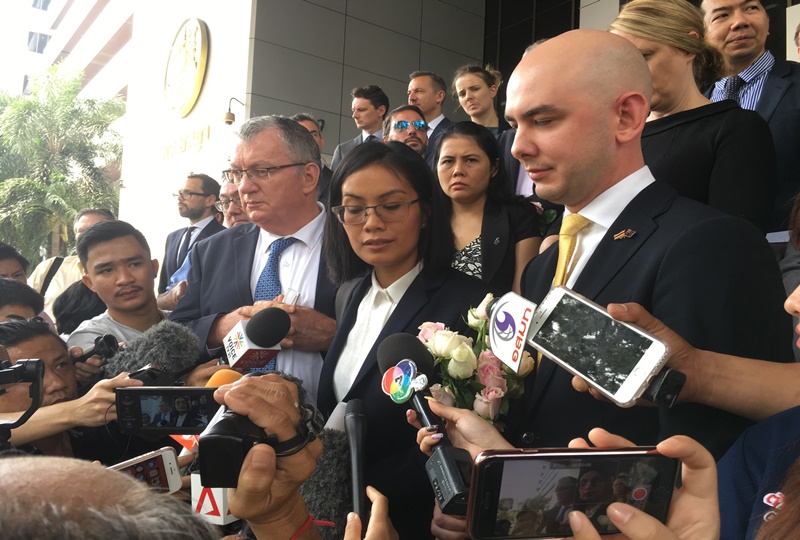 กรุงเทพฯ 11 ก.พ.- นางณัฐาศิริ เบิร์กแมน ทนายความของ นายฮาคีม อัล อาไรบี อดีตนักฟุตบอลทีมชาติบาห์เรน ระบุหลังอัยการถอนฟ้องคดีส่งผู้ร้ายข้ามแดนว่า ล่าสุด นายฮาคีม ผ่านประตูบอร์ดดิ้งพาส สนามบินสุวรรณภูมิเรียบร้อยแล้ว และอยู่ในความดูแลของเจ้าหน้าที่สถานเอกอัครราชทูตออสเตรเลีย ในทุกขั้นตอนจนกว่าจะเดินทางขึ้นเครื่องบินกลับ โดยนายฮาคีม จะขึ้นเครื่องการบินไทยเที่ยวบินที่ TG465 จากสนามบินสุวรรณภูมิไปยังเมลเบิร์น ประเทศออสเตรเลียในเวลาเที่ยงคืน.-สำนักข่าวไทย