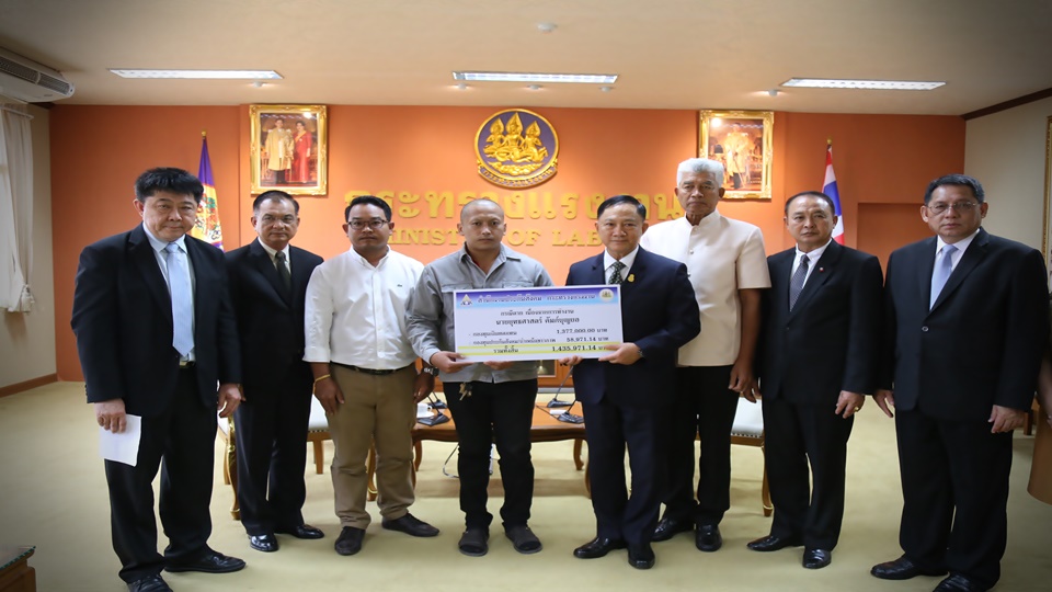 โดยในวันนี้ (14 ก.พ.) ตนได้มอบเงินให้แก่ทายาท ซึ่งลูกจ้างที่เสียชีวิตจากเหตุการณ์นี้คือ นายยุทธศาสตร์ คัมภ์บุญยอ จะได้รับสิทธิประโยชน์จากกองทุนเงินทดแทน เป็นจำนวนเงิน 1,377,000 บาท และสิทธิประโยชน์จากกองทุนประกันสังคม พร้อมเงินบำเหน็จชราภาพ จำนวน 58,971.14 บาท รวมเป็นเงินทั้งสิ้น 1,435,971.14 บาท