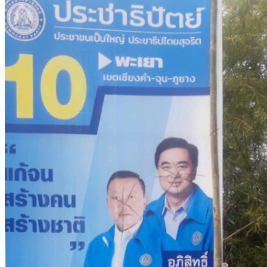 พะเยา 17 ก.พ.-พะเยาแรง ผู้สมัครประชาธิปัตย์ร้องถถูกกรีดป้ายหาเสียง ชี้เป็นสัญลักษณ์ความรุนแรง