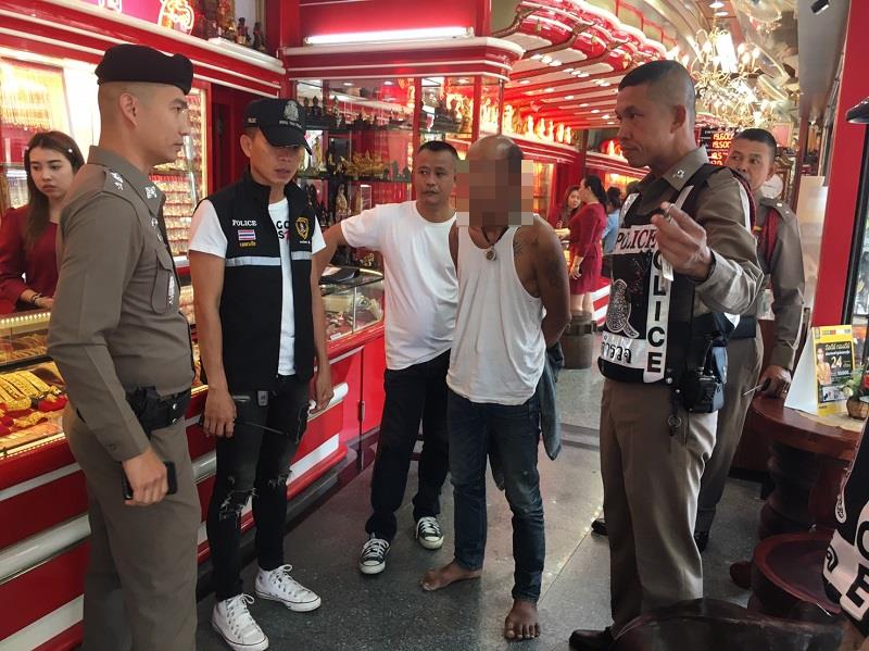 นครศรีธรรมราช 19 ก.พ.- ชายวัย 43 ปี ตกงานดื่มหนักก่อเหตุชิงทรัพย์ร้านทองย่านกลางเมืองนครศรีธรรมราช แต่วิ่งหนีไม่ทันถูกจับตัวได้ ส่วนเพื่อนจอด จยย.รออยู่รีบสตาร์ทเครื่องเผ่นหนี