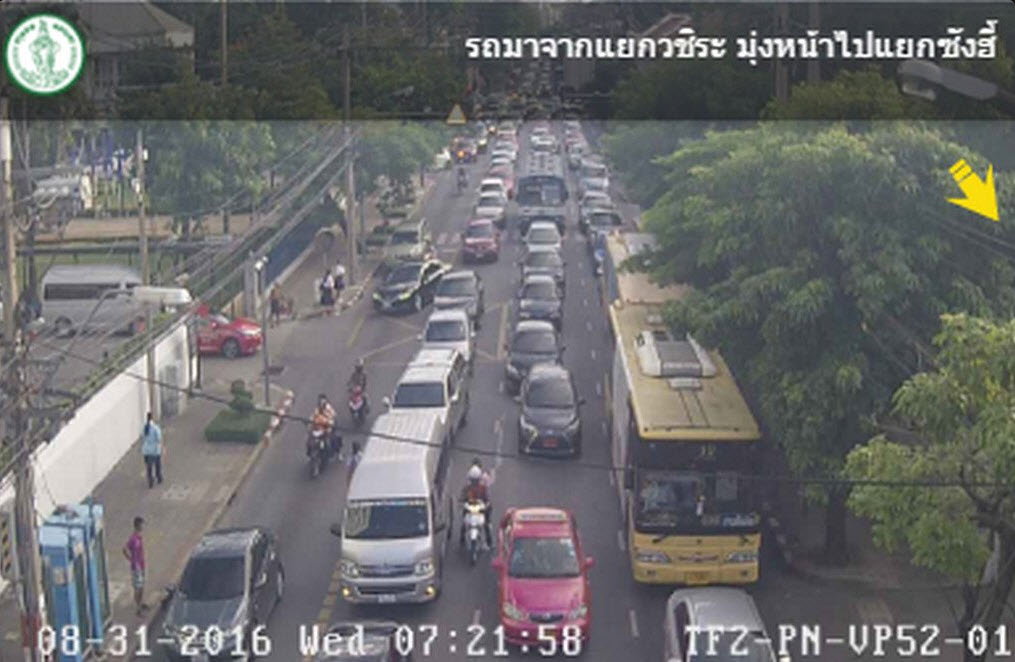 สภาพการจราจร ถนนสามเสน จากแยกศรีย่าน มุ่งหน้าแยกวชิระ-แยกซังฮี้ รถมาก เคลื่อนตัวช้า