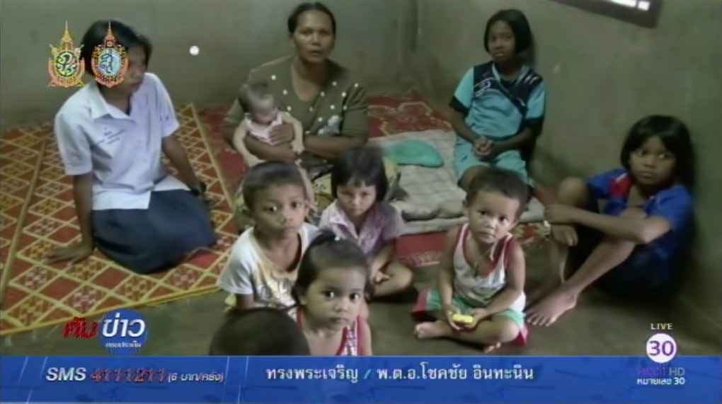 ผู้สื่อข่าวเดินทางไปยังบ้านพักในพื้นที่ หมู่ที่ 4 ตำบลหาดสำราญ อำเภอหาดสำราญ จังหวัดตรัง พบสามีภรรยาคู่หนึ่งมีลูกมากถึง 15 คน โดยผู้เป็นแม่อายุ 39 ปี เล่าว่า แต่งงานตั้งแต่อายุ 15 ปี กับสามีคนแรก และมีลูกติดมา 5 คน หลังเลิกรากันก็มาพบรักกับสามีคนปัจจุบันคือ ซึ่งได้อยู่กินกันมา 14 ปีแล้ว จนมีลูกชายหญิงด้วยกัน 10 คน รวมกับลูกติดเป็น 15 คน ผู้ชาย 8 คน ผู้หญิง 7 คน โดยคนโตเป็นผู้หญิง อายุ 22 ปี และคนเล็กเป็นผู้ชาย อายุเพียงแค่ 2 เดือน ซึ่งตอนนี้ครอบครัวของตนมีสมาชิกอาศัยอยู่ในบ้านหลังเดียวกันถึง 18 ชีวิต ประกอบด้วย ตนเอง สามี ลูก 15 คน และหลานสาวอีก 1 คน ซึ่งเป็นลูกของลูกสาวคนโต ไปทำงานอยู่ต่างจังหวัด โดยตนและสามีมีอาชีพรับจ้างกรีดยาง มีรายได้ประมาณวันละ 500 บาท แต่ไม่ทุกวัน เพราะช่วงนี้มีฝนตกชุก เดือนหนึ่งๆ จึงสามารถกรีดยางได้แค่ 10-15 วันเท่านั้น และไม่มีรายได้อื่นเสริม ทำให้ครอบครัวต้องอดมื้อกินมื้อ บางครั้งไม่มีแม้เงินจะซื้อนมและข้าวสาร ซึ่งในแต่ละวันต้องหุงให้ลูกกินอย่างน้อย 2.5 กิโลกรัม แต่ถ้าเป็นเสาร์-อาทิตย์ จะต้องหุงข้าวถึงวันละ 3 กิโลกรัม ส่วนกับข้าวก็จะเน้นปลากระป๋อง ไข่ และบะหมี่กึ่งสำเร็จรูป ส่วนนมที่ให้ลูกคนเล็กกิน ก็เป็นนมข้นหวานและต้องเช่าบ้านเดือนละ 1,500 บาท และยังมีค่าใช้จ่ายที่ต้องให้ลูกๆ ไปโรงเรียน ซึ่งตนก็รู้ว่าการมีลูกมากจะทำให้ยากจน และเวลาไปคลอดที่โรงพยาบาลก็ได้รับการแนะนำให้ทำหมัน แต่สาเหตุที่ตนไม่ยอมทำ เพราะคิดว่าหลังทำหมันต้องนอนพักฟื้นหลายวัน แล้วลูกตนที่ยังเล็กๆ อยู่จะกินอะไร หรือใครจะดูแลเลี้ยงดู จึงหันมาคุมกำเนิดด้วยการกินยาแทน แต่บางครั้งก็พลาด หรือพลั้งเผลอบ้าง จนเกิดท้องทุกปี ซึ่งเมื่อเกิดท้องขึ้นมาแล้ว ตนก็ต้องปล่อยให้คลอดออกมาทุกคน และไม่เคยคิดจะทำแท้ง เพราะกลัวบาป