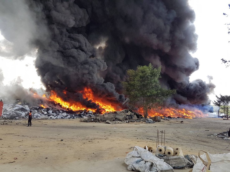 เมื่อเวลา 10.00 น. (22 ก.พ.) เกิดเหตุเพลิงไหม้กองวัสดุประเภทพรมและยางของโรงงานคัดแยกวัสดุไม่ใช้แล้วที่ไม่เป็นของเสียอันตราย ในพื้นที่หมู่ 3 ต.มาบข่า อ.นิคมพัฒนา จ.ระยอง ซึ่งเป็นกองวัสดุมีปริมาณ 500 ตัน อยู่ด้านนอกอาคาร เจ้าหน้าที่ดับเพลิงเทศบาลมาบข่าพัฒนาระดมรถน้ำจากหน่วยงานใกล้เคียงกว่า 10 คัน เข้าระงับเหตุท่ามกลางกลุ่มควันดำปกคลุมหนาทึบ