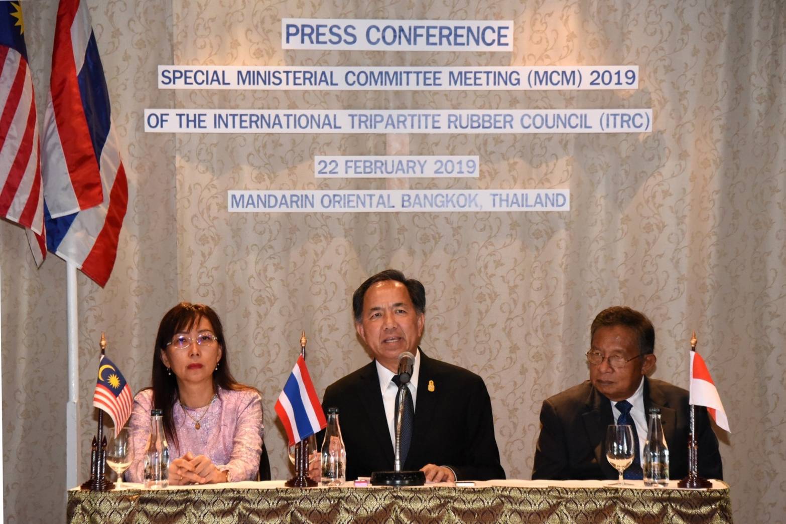 นายกฤษฎา บุญราช รัฐมนตรีว่าการกระทรวงเกษตรและสหกรณ์ แถลงผลการประชุมไตรภาคียางระหว่างประเทศ (ITRC) ว่า ที่ประชุมเห็นชอบให้มีการแต่งตั้งเจ้าหน้าที่อาวุโส เพื่อร่วมกันหาแนวทางรักษาเสถียรภาพราคายางอย่างยั่งยืน โดยมีมาตรการเบื้องต้น ประกอบด้วย จำกัดปริมาณการส่งออกยางของ 3 ประเทศ รวม 200,000 – 300,000 ตัน หาวิธีเพิ่มปริมาณการใช้ยางในประเทศเพิ่มขึ้น บริหารจัดการผลผลิตในประเทศ โดยการลดพื้นที่ปลูกยางพาราไปปลูกพืชชนิดอื่นทดแทน ทำตลาดยางพาราร่วมกันระหว่างภูมิภาค เพื่อซื้อขายยางพาราล่วงหน้า และตั้งสภายางพาราแห่งอาเซียน เพื่อเป็นเวทีให้ทั้ง 3 ประเทศมาพูดคุยหารือกันในประเด็นยางพารา ไม่ว่าจะเป็นการแปรรูปยางพารา การศึกษาค้นคว้า งานวิจัย หรือเวทีและเปลี่ยนเรียนรู้ซึ่งกันและกัน