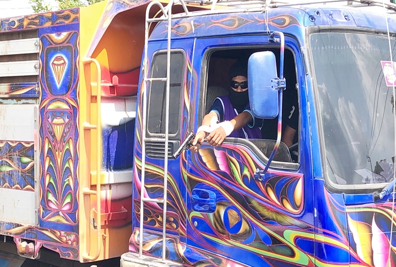 นายสุรศักดิ์ อินชลานุช คนขับรถบรรทุกสิบล้อ ถูกคุมตัวมาทำแผนประกอบคำรับสารภาพ บริเวณจุดเกิดเหตุ ถนนเทพรักษ์ ย่านสะพานใหม่ หลังก่อเหตุใช้ปืนยินใส่รถเก๋ง MG เมื่อคืนวันที่ 21 กุมภาพันธ์ที่ผ่านมา และเดินทางเข้ามอบตัวกับตำรวจเพื่อรับทราบข้อกล่าวหาเมื่อเย็นวานนี้ (23 ก.พ.)