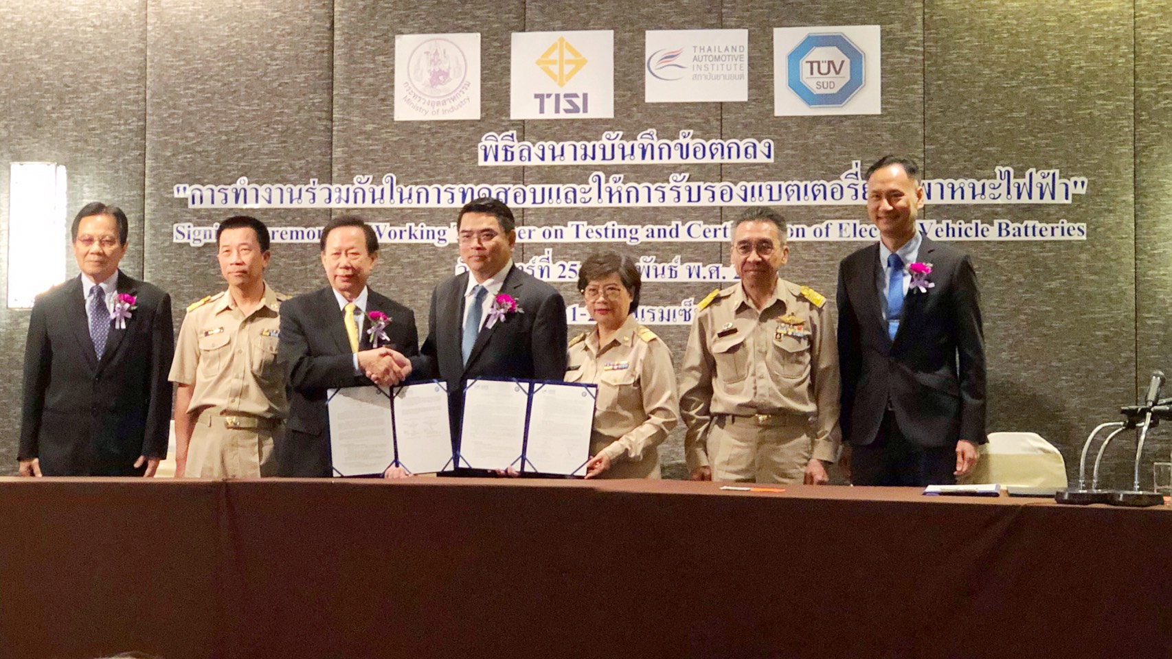 สถาบันยานยนต์ลงนามบันทึกข้อตกลงกับบริษัท ทูฟ ซูด จากเยอรมนี สร้างศูนย์ทดสอบแบตเตอรี่ยานยนต์ไฟฟ้าแห่งแรกมาตรฐานสากลของอาเซียน มีกำหนดเปิดให้บริการทดสอบแบบเตอรี่ยานยนต์ไฟฟ้าปี 2563 ซึ่งรองรับกับการที่ประเทศไทยในฐานะหนึ่งในฐานการผลิตยานยนต์ที่สำคัญของโลก ได้มีการพัฒนาอุตสาหกรรมยานยนต์ไฟฟ้าเช่นเดียวกันหลายประเทศ ที่ล่าสุดสำนักงานคณะกรรมการส่งเสริมการลงทุน (BOI) อนุมัติส่งเสริมการลงทุนผลิตยานยนต์ไฟฟ้าในประเทศไทยไปแล้ว 8 ค่ายรถชั้นนำ เช่น Nissan Mercedes Benz BMW และ FOMM เป็นต้น