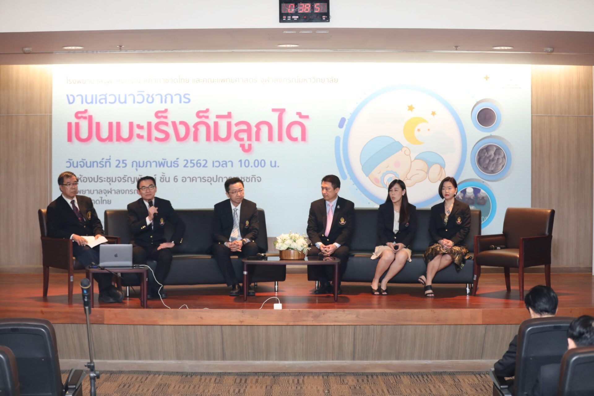 ในการเสวนาเชิงวิชาการ“เป็นมะเร็งก็มีลูกได้” ที่โรงพยาบาลจุฬาลงกรณ์ จัดขึ้นเพื่อ นำเสนอข้อมูลเป็นทางเลือก สำหรับผู้ป่วยมะเร็งที่ ต้องการมีลูกแต่ อาจคิดว่าเมื่อทำการรักษาด้วยวิธีเคมีบำบัด ฉายแสงแล้ว จะไปทำลายเซลล์ในระบบสืบพันธุ์ ทำให้ไม่สามารถ มีลูกได้นั้น ว่าในปัจจุบันการเกิดมะเร็งมีแนวโน้มเพิ่มสูงขึ้นในผู้ป่วยที่มีอายุน้อย อย่างไรก็ตามความก้าวหน้าทางการแพทย์ในปัจจุบัน ส่งผลให้การรักษามะเร็งมีประสิทธิภาพดีขึ้นทำให้ผู้ป่วยสามารถมีชีวิตที่ยืนยาวมากขึ้น รวมทั้งมีโอกาสหายจากมะเร็งได้ อย่างไรก็ตามการรักษามะเร็งด้วยวิธีมาตรฐาน เช่น การผ่าตัด รังสีรักษา หรือเคมีบำบัด มักส่งผลให้ผู้ป่วยทั้งฝ่ายชายและฝ่ายหญิงสูญเสียความสามารถในการเจริญพันธุ์และการมีบุตรภายหลังจากการรักษามะเร็งหายแล้ว หรือผู้ป่วยที่ไม่ได้เป็นมะเร็งแต่ต้องได้รับการรักษาด้วยรังสีรักษา หรือเคมีบำบัด ได้แก่ โรคทางระบบโลหิตวิทยา เช่น Systemic Lupus Erythematosus (SLE) เป็นต้น โดยผู้ป่วยกลุ่มดังกล่าวมีความเสี่ยงสูงต่อภาวะรังไข่หยุดทำงานและอาจจะไม่สามารถมีบุตรได้ในอนาคต