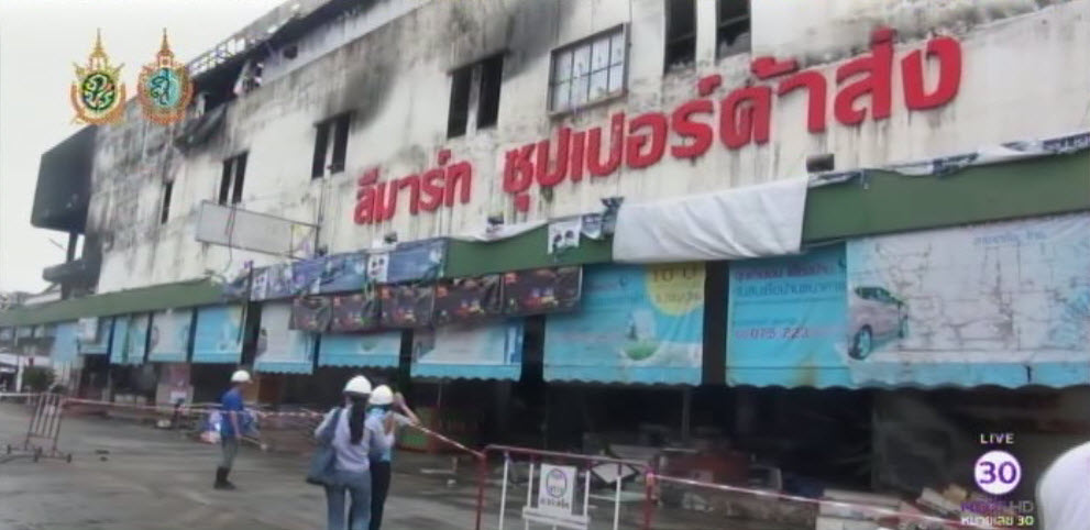 ตรัง 30 ส.ค. – วิศวกรจากกรมโยธาธิการและผังเมือง เข้าตรวจสอบสภาพความเสียหายโครงสร้างอาคารห้างลีมาร์ท ซุปเปอร์ค้าส่ง ถนนสถานีรถไฟ เขตเทศบาลนครตรัง หลังเกิดเหตุคนร้ายลอบวางระเบิดเพลิงจนอาคารเสียหายทั้ง 4 ชั้น
