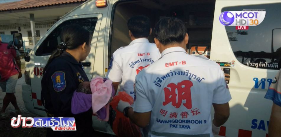 ชลบุรี 28 ก.พ. – สายตรวจ สภ.บางละมุง และกู้ภัย เข้าช่วยเหลือเด็กแรกเกิดที่ถูกทิ้งไว้ในถังขยะหลังวัดกระทิงลาย ต.หนองปลาไหล อ.บางละมุง จ.ชลบุรี โดยที่เกิดเหตุบริเวณกำแพงวัดพบเด็กแรกเกิดเพศหญิงสายสะดือยังไม่หลุด ถูกยัดใส่ถุงดำ สวมถุงพลาสติกอีกชั้น นำมาทิ้งไว้ในถังขยะ เจ้าหน้าที่ปฐมพยาบาลเบื้องต้น เด็กปลอดภัย จึงนำส่งโรงพยาบาลดูแลต่อ
