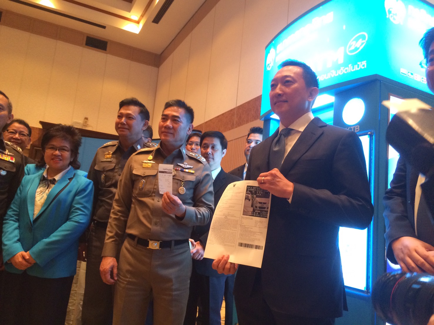 พลตำรวจเอกจักรทิพย์ ชัยจินดา ผู้บัญชาการตำรวจแห่งชาติ พร้อมด้วย นายวรภัค ธันยาวงษ์ กรรมการผู้จัดการใหญ่ ธนาคารกรุงไทย แถลงความร่วมมือการรับชำระค่าปรับจราจรผ่านธุรกรรมทางอิเล็กทรอนิกส์ เพื่ออำนวยความสะดวกให้ผู้ที่ได้รับใบสั่ง ไม่ต้องไปชำระที่สถานีตำรวจ โดยผู้ที่ได้รับใบสั่งที่มาจากกล้องของ กองบังคับการตำรวจจราจร กองบังคับการตำรวจทางหลวง และสถานีตำรวจสังกัดกองบัญชาการตำรวจนครบาล สามารถนำบาร์โค้ดที่ระบุในใบสั่งใหม่ตั้งแต่วันที่ 1 กันยายนนี้ ไปชำระได้ที่เคาน์เตอร์บริการ 1,200 สาขาทั่วประเทศ และ KTB netbank จากนั้นจึงขยายการชำระค่าปรับผ่านเครื่องเอทีเอ็ม 9,000 เครื่อง วันที่ 5 กันยายน ก่อนเดินหน้าขยายบริการรับชำระใบสั่งทุกประเภท ทุกสถานีตำรวจทั่วประเทศ ภายในเดือนมกราคม 2560 โดยมีพันธมิตร ธนาคารอื่นอีก 5 แห่งเตรียมเข้าสู่ระบบภายในเร็วๆนี้ เข่น ธนาคาร กรุงศรีฯ ธนาคารธนชาติฯ ธนาคารทหารไทยฯ บริษัทเติมสบายฯ และบริษัท บุญเติมฯ