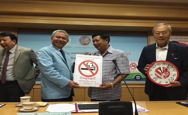 นายสนิท พรหมวงษ์ อธิบดีกรมการขนส่งทางบก พร้อมด้วยนายแพทย์สุเทพ เพชรมาก รองอธิบดีกรมควบคุมโรค และศาสตราจารย์ นายแพทย์ประกิต วาทีสาธกกิจ เลขาธิการมูลนิธิรณรงค์เพื่อการไม่สูบบุหรี่ ร่วมรณรงค์ให้แท็กซี่ทุกคันปลอดควันบุหรี่ 100% พร้อมมอบสื่อสติ๊กเกอร์ “ห้ามสูบบุหรี่” สำหรับติดบนรถแท็กซี่ เพื่อสร้างความตระหนักให้ปฏิบัติตามกฎหมายและตระหนักถึงพิษภัยจากควันบุหรี่มือสองที่อาจตกค้างอยู่ภายในรถซึ่งส่งผลกระทบต่อสุขภาพของผู้ที่ไม่สูบบุหรี่