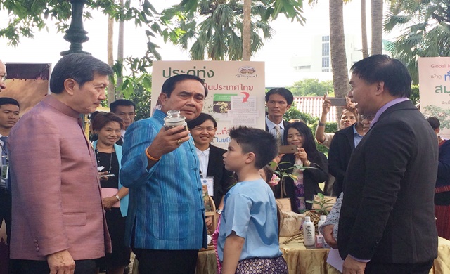 จากนั้นนายกรัฐมนตรีได้รับประทานเค็กดอกดาวเรือง ที่ช่วยบำรุงสายตาและน้ำดอกคุณนายตื่นสายที่ช่วยดับพิษแก้ร้อนใน และได้นำต้นประดู่ทุ่ง ซึ่งเป็นสมุนไพรที่ใช้สกัดเป็นครีมทำหน้าขาวได้รับความนิยมในต่างประเทศมาแสดงให้สื่อมวลชนดู พร้อมขอให้เร่งจดสิทธิบัตร นายกรัฐมนตรีได้นำครีมมาทาที่หน้าของสื่อมวลชน ทั้งยังกล่าวหยอกล้อด้วยว่าครีมหน้าขาวใช้แล้วดี ถ้าใครหน้าดำก็ไม่เป็นไรขอให้ใจอย่าดำ ก่อนที่จะนำเอายาหอมเทพจิตร ที่มีสรรพคุณแก้ลม บำรุงหัวใจมาให้สื่อมวลชนได้ทดลองใช้ โดยบอกว่ากินแล้วอารมณ์ดี ทำให้ตนต้องกินทุกวัน และขอให้สื่อกินด้วยจะได้ตั้งคำถามดี ๆ.-สำนักข่าวไทย