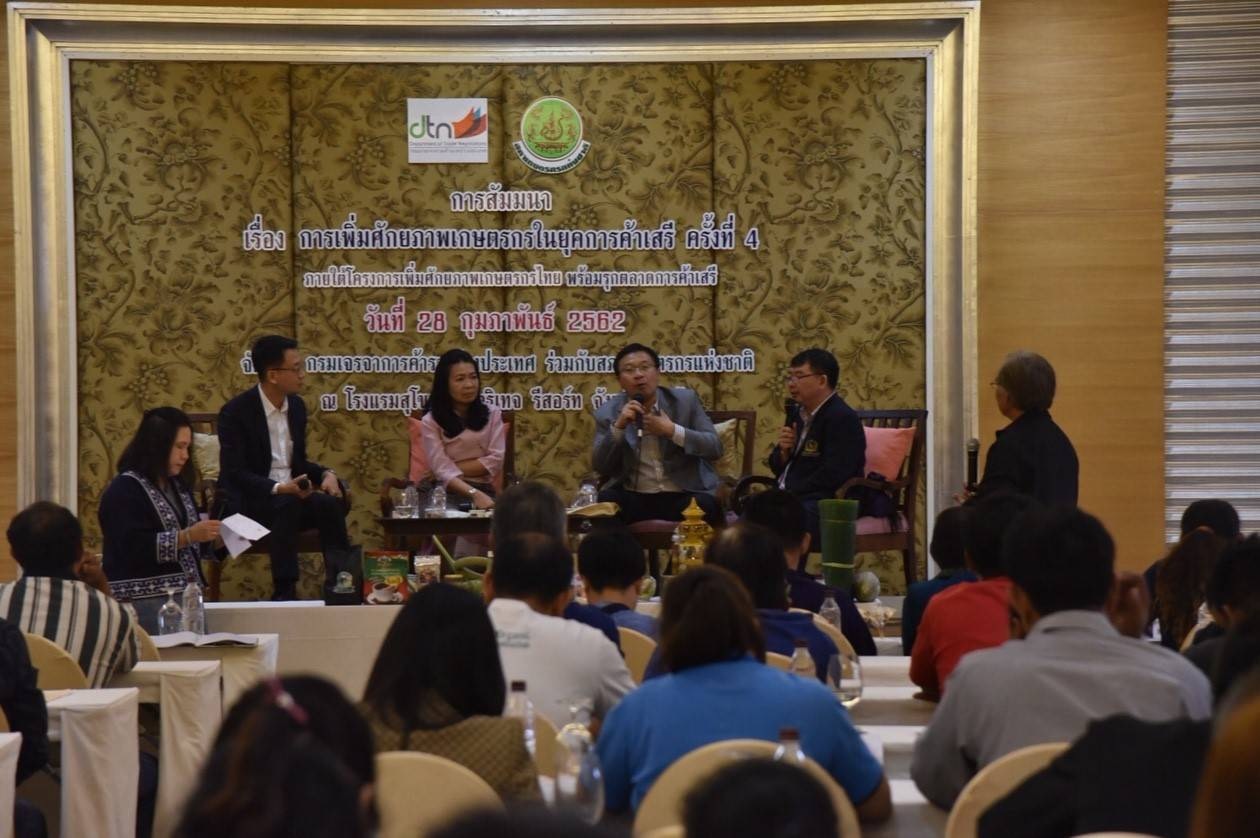 นางอรมน ทรัพย์ทวีธรรม อธิบดีกรมเจรจาการค้าระหว่างประเทศ เผยผลการผนึกกำลังของกรมเจรจาการค้าระหว่างประเทศร่วมกับสภาเกษตรกรแห่งชาติ สำนักงานพาณิชย์จังหวัดสุโขทัย สำนักงานสภาเกษตรกรจังหวัดสุโขทัย และสำนักงานกองทุนสนับสนุนการวิจัย (สกว.) ที่ร่วมลงพื้นที่จัดสัมมนาและพบปะเกษตรกรภาคเหนือตอนล่าง ระหว่างวันที่ 27 กุมภาพันธ์ – 1 มีนาคม 2562 จังหวัดสุโขทัย ภายใต้โครงการ “เพิ่มศักยภาพเกษตรกรในยุคการค้าเสรี ครั้งที่ 4” ว่าได้รับความสนใจและตอบรับอย่างดีจากกลุ่มเกษตรกรในพื้นที่ภาคเหนือตอนล่าง จากจังหวัดสุโขทัย พิษณุโลก อุตรดิตถ์ เพชรบูรณ์ และนครสวรรค์ โดยเฉพาะเกษตรกรกลุ่มผู้ผลิตและแปรรูปกาแฟ ชาดอกกาแฟ ส้ม ละมุด และใบตองตานี ซึ่งผู้ผลิตหลายรายมีศักยภาพสามารถใช้ประโยชน์จากความตกลงการค้าเสรี (เอฟทีเอ) สร้างรายได้และขยายการส่งออกไปต่างประเทศ