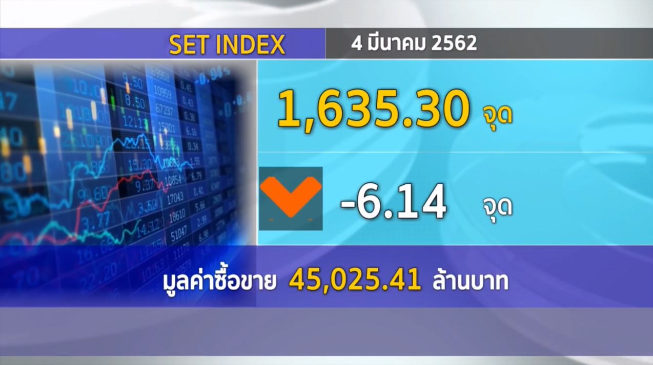 กรุงเทพฯ 4 มี.ค.-ตลาดหุ้นไทย (4 มี.ค.) ปิดการซื้อขายที่ 1,635.30 จุด ลบ 6.14 จุด มูลค่าการซื้อขาย 45,025.41 ล้านบาท .-สำนักข่าวไทย