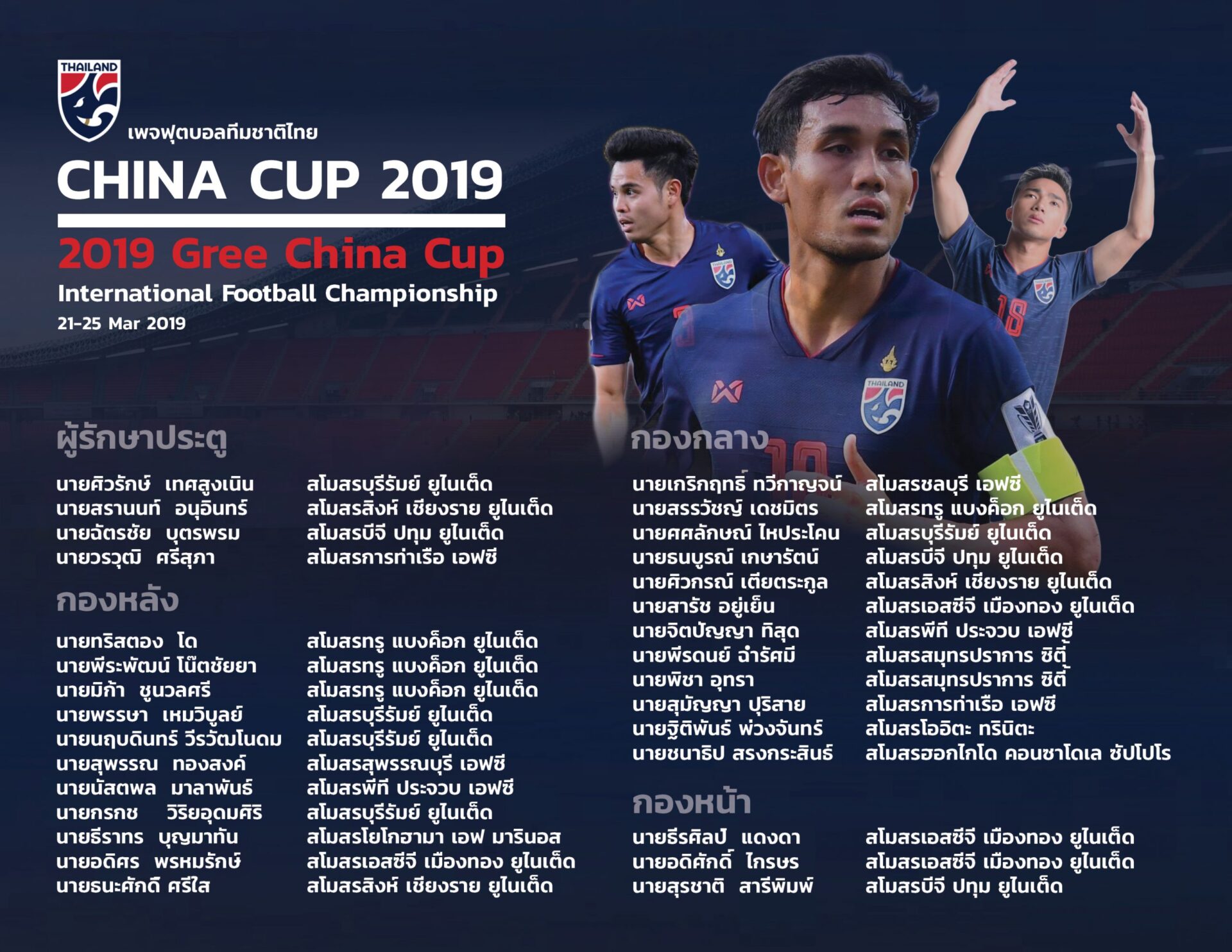 18 มีนาคม 2562 และออกเดินทางไปแข่งขันฟุตบอลไชน่า คัพ 2019 ในวันที่ 19 มีนาคม