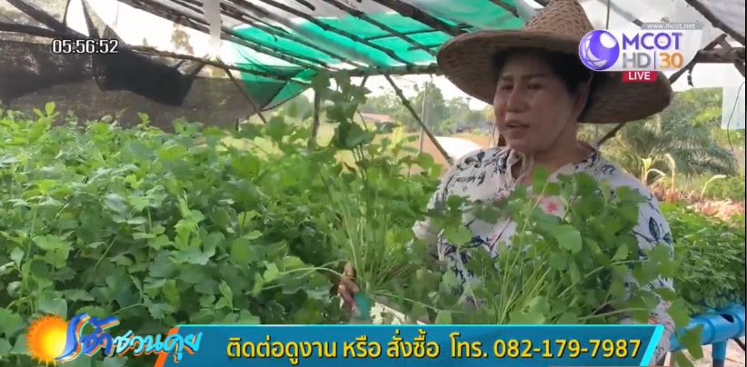 ตรัง 6 มี.ค.- ภรรยาตำรวจยศ พ.ต.ท. ปลูกขึ้นฉ่ายไร้ดิน ระยะเวลาปลูกสั้นกว่าปลูกลงดินถึงเท่าตัว เก็บเกี่ยวง่าย ไม่มีโรคหรือแมลงรบกวน สร้างรายได้กว่า 5,000 บาท/วัน ตอนนี้ไม่ต้องง้อเงินเดือนของสามีแล้ว เตรียมขยายพื้นที่ปลูกเพิ่มอีก