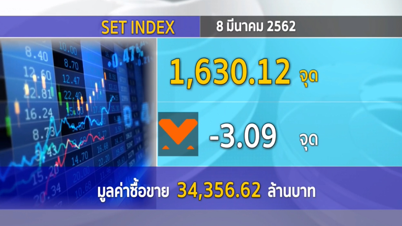 กรุงเทพฯ 8 มี.ค.-ตลาดหุ้นไทย (8 มี.ค.) ปิดการซื้อขายที่ 1,630.12 จุด ลบ 3.09 จุด มูลค่าการซื้อขาย 34,356.62 ล้านบาท .-สำนักข่าวไทย