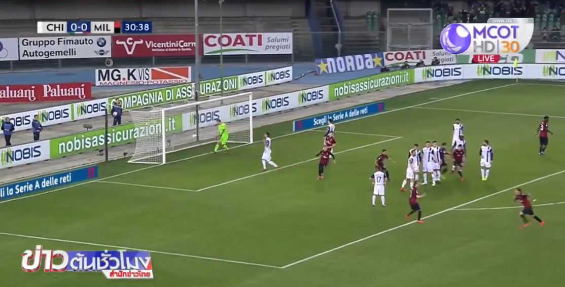 อิตาลี 10 มี.ค. – ฟุตบอลกัลโช่ เซเรีย อา อิตาลี นัดที่ 27 คิเอโว ทีมท้ายตารางคะแนน ชุดสีขาว เปิดบ้านพบ “ปีศาจแดงดำ” เอซี มิลาน ทีมอันดับ 3 เกมนี้เอซี มิลาน ได้ประตูออกนำก่อน 1-0 จาก ลูคัส บีญา นาที 31 แต่เจ้าถิ่นมาตามตีเสมอ 1-1 จาก เปอร์ปาริม เฮเตมัจ นาที 41 แต่นาที 51 คริสตอฟ ปิอาเท็ค มายิงประตูชัยให้เอซี มิลาน บุกชนะ คิเอโว 2-1 ส่งผลให้เอซี มิลาน ทำผลงาน 10 นัดหลังสุด ชนะ 7 เสมอ 3 ไม่แพ้ใคร และเสียไปแค่ 3 ประตูเท่านั้น มี 51 คะแนน อยู่อันดับ 3 แต่ตามหลังจ่าฝูงยูเวนตุส ถึง 24 คะแนน ส่วน คิเอโว ยังอยู่ท้ายตารางคะแนนเช่นเดิม มี 10 คะแนน โอกาสตกชั้นลงไปเล่นกัลโช่ เซเรีย บี มีสูง . – สำนักข่าวไทย