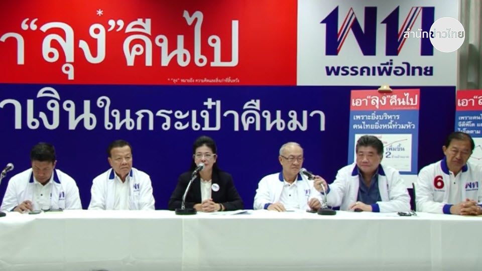 เพื่อไทย 10 มี.ค.- พรรคเพื่อไทยแถลงนโยบายเศรษฐกิจ ย้ำแก้ปัญหาภายใน 6 เดือน เชื่อ ประชาชนจะเลือกฝ่ายประชาธิปไตยเข้ามาบริหารประเทศ ชี้ฝ่ายที่แทงกั๊กไม่ใช่ทางออกประเทศ