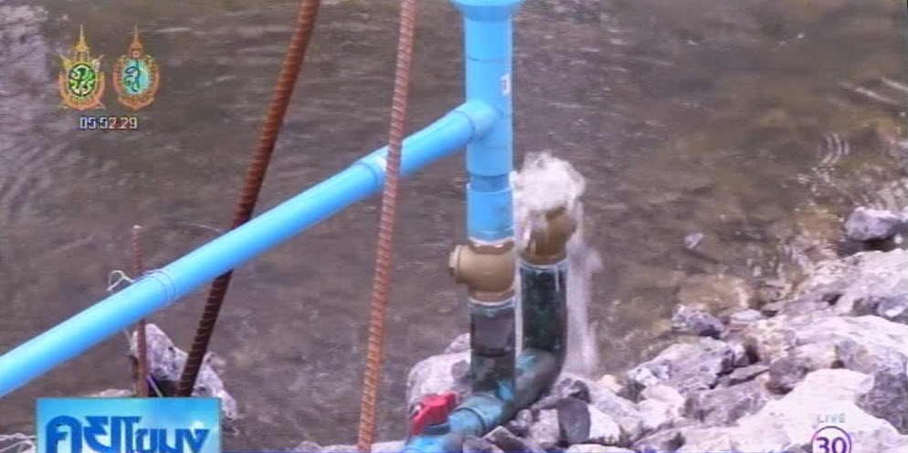 ศูนย์อาสาบรรเทาภัยแล้ง กรมชลประทาน ติดตั้งระบบตะบันน้ำ ขนาดท่อ 2 นิ้ว บริเวณท้ายฝายห้วยบ่อ อ.เมือง จ.ขอนแก่น เพื่อสูบน้ำใส่นาข้าว เป็นต้นแบบให้เกษตรกรได้ศึกษาระบบตะบันน้ำ การสูบน้ำอัตโนมัติโดยไม่อาศัยเชื้อเพลิงหรือไฟฟ้า