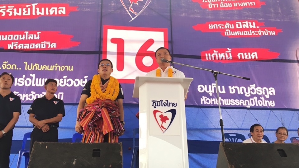 นายอนุทิน ชาญวีรกูล หัวหน้าพรรคภูมิใจไทย และนายสรอรรถ กลิ่นประทุม ประธานที่ปรึกษาพรรค ขึ้นเวทีปราศรัยช่วยนายเชวงศักดิ์ เร่งไพบูลย์วงศ์ ผู้สมัคร ส.ส. เขต 5 จ.ชัยภูมิ หาเสียงกับประชาชนในพื้นที่ อ.ภูเขียว และ อ.คอนสาร โดยมีประชาชนร่วมฟังการปราศรัยและให้การต้อนรับอย่างคึกคัก