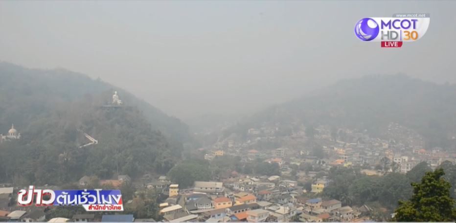 สถานการณ์ฝุ่นละอองขนาดเล็ก PM2.5 พื้นที่ภาคเหนือยังวิกฤติ ล่าสุดยังมี 9 จังหวัด 17 พื้นที่ที่ได้รับผลกระทบ ในจำนวนนี้ 14 พื้นที่ค่า PM2.5 เกินมาตรฐานอยู่ในเกณฑ์สีแดง มีผลกระทบต่อสุขภาพ โดยเฉพาะ ต.เวียงพางคำ อ.แม่สาย จ.เชียงราย ค่าฝุ่นพุ่งสูงสุดใน 9 จังหวัด ต่อเนื่องเป็นวันที่ 6 เช้านี้วัดได้ 203 ไมโครกรัม/ลูกบาศก์เมตร ส่งผลให้ทั่ว อ.แม่สาย ท้องฟ้าเป็นสีเทา เจ้าหน้าที่ระดมรถดับเพลิงฉีดพ่นละอองน้ำวันละ 2 รอบ พร้อมประสานประเทศเพื่อนบ้านร่วมแก้ปัญหา เนื่องจากฝุ่นละอองส่วนหนึ่งเกิดจากไฟไหม้ตามแนวตะเข็บชายแดน