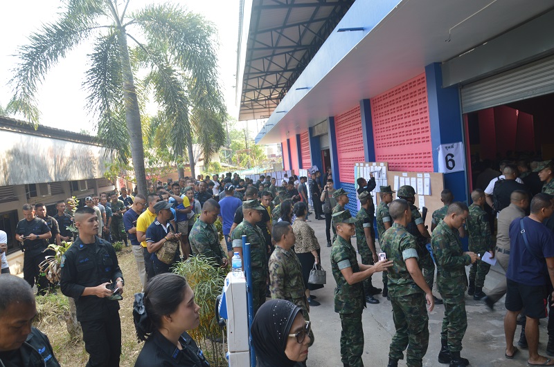 ภูมิภาค 17 มี.ค.- หน่วยเลือกตั้งล่วงหน้าทั้งในและนอกเขตหลายจังหวัดภาคใต้มีประชาชนมาใช้สิทธิ์ตั้งแต่เช้าและเรียบร้อยดี โดยเฉพาะนราธิวาสผู้มาใช้สิทธิ์ส่วนใหญ่เป็นทหารและตำรวจ เพื่อเตรียมพร้อมปฏิบัติหน้าที่ดูแลความสงบเรียบร้อยในวันลงคะแนนทั่วไป 24 มี.ค.นี้