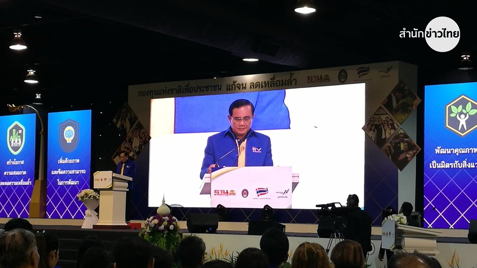 พล.อ.ประยุทธ์ จันทร์โอชา นายกรัฐมนตรี เป็นประธานเปิดโครงการกองทุนแห่งชาติเพื่อประชาชน แก้จน ลดความเหลื่อมล้ำ ที่ศูนย์การประชุมอิมแพ็ค เมืองทองธานี ซึ่งจัดโดยภาคเอกชน ร่วมกับมหาวิทยาลัยราชภัฏทั่วประเทศ เพื่อมอบกรอบแนวคิดการจัดทำแผนแม่บทกองทุนหมู่บ้านและชุมชนเมือง แก่นายกรัฐมนตรี ด้วยหวังแก้ไขปัญหาเศรษฐกิจระดับฐานราก นำไปสู่การลดความเหลื่อมล้ำ แก้ปัญหาความยากจนและความเดือดร้อนของหมู่บ้านและชุมชนอย่างยั่งยืน
