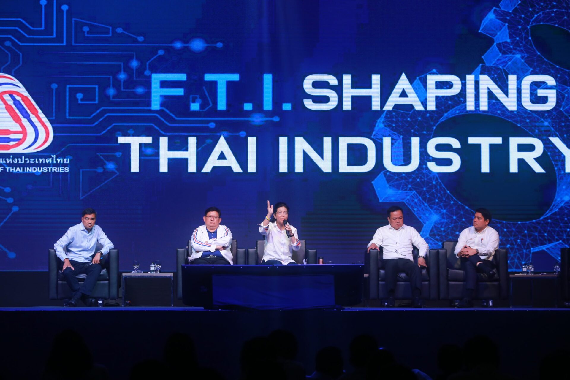 ก่อนการเสวนา นายสุพันธุ์ มงคลสุธี ประธาน ส.อ.ท. นำเสนอ “ทิศทางอุตสาหกรรมไทย 2025” ว่า ทุกอุตสาหกรรมต้องเปลี่ยนแปลงโดยร่วมมือกับภาครัฐ สำหรับปัจจัยขับเคลื่อนอุตสาหกรรมไทยให้เข้มแข็งมี 5 ยุทธศาสตร์ ประกอบด้วย 1.สร้างความเข้มแข็งเครือข่ายอุตสาหกรรม โดยขับเคลื่อนอุตสาหกรรมร่วมกับภาครัฐผ่าน กรอ.จังหวัด โดยอยากให้ประชุมอย่างน้อย 2 เดือนครั้ง เร่งจัดทำ Ease of Doing Business ของทั้งภาครัฐและเอกชน ตั้งศูนย์ถ่ายทอดเทคโนโลยีการผลิตสมัยใหม่ เพื่อให้แข่งขันได้ 2.การเพิ่มขีดความสามารถแข่งขันอุตสาหกรรมไทย โดยตั้งกองทุน Innovation Fund โดยผู้บริจาคเข้ากองนำไปหักลดหย่อนภาษีได้ กองทุนนี้บริหารโดยภาคเอกชน ตั้งศูนย์บิ๊กดาต้าภาคอุตสาหกรรม บริหารโดยภาคเอกชน เดินหน้า Smart Agro จัดทำโซนนิ่งรัฐบาลสนับสนุนแต่ละพื้นที่โดยให้สหกรณ์การเกษตรบริหาร 3.ยกระดับเอสเอ็มอี และส่งเสริม Made in Thailand ตั้ง SME Venture Program รัฐช่วยเหลือด้านลดหย่อนภาษี นอกจากนี้ จะต้องยกระดับสินค้าให้มีคุณภาพมาตรฐานสากล โดยเอสเอ็มอีได้รับคูปองช่วยเหลือ จัดตั้งกองทุนผู้เชี่ยวชาญช่วยเอสเอ็มอี โดยรัฐให้เงินเดือนผู้ที่ขึ้นทะเบียน จัดการประชาสัมพันธ์สินค้าที่ผลิตในไทยทั้งในและต่างประเทศให้เกิดความเชื่อถือ เชื่อมั่นและส่งเสริมการตลาด โดยตั้งศูนย์พาณิชย์อิเล็กทรอนิกส์ เพื่อเตรียมพร้อมในการเข้าสู่พาณิชย์ธุรกิจ