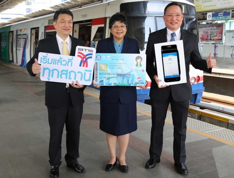นางสาวสุทธิรัตน์ รัตนโชติ อธิบดีกรมบัญชีกลาง พร้อมด้วยนายผยง ศรีวณิช กรรมการผู้จัดการใหญ่ ธนาคารกรุงไทย และนายสุรพงษ์ เลาหะอัญญา กรรมการผู้อำนวยการใหญ่ บมจ.ระบบขนส่งมวลชนกรุงเทพ (BTS) ร่วมเปิดการใช้ช่องทางการรับชำระเงินค่าโดยสารรถไฟฟ้า BTS สำหรับผู้ถือบัตรสวัสดิการแห่งรัฐที่ลงทะเบียนเพื่อสวัสดิการแห่งรัฐครั้งแรกปี 2560 ประเภทบัตรแมงมุม เวอร์ชั่น 2.0 , 2.5 จำนวน 1.3 ล้านราย และผู้ที่ลงทะเบียนเพื่อสวัสดิการแห่งรัฐเพิ่มปี 2561 ประเภทบัตร Contactless (EMV 4.0) จำนวน 160,000 ราย รวมทั้งสิ้น 1.46 ล้านราย ซึ่งเป็นส่วนหนึ่งของนโยบายรัฐบาลที่ช่วยแบ่งเบาภาระค่าใช้จ่ายในการเดินทางของผู้ถือบัตรสวัสดิการแห่งรัฐที่ลงทะเบียนในเขตกรุงเทพฯ จังหวัดนนทบุรี พระนครศรีอยุธยา ปทุมธานี นครปฐม สมุทรปราการ และสมุทรสาคร โดยมีวงเงินในบัตรฯ เพื่อใช้บริการขนส่งสาธารณะเดือนละ 500 บาท