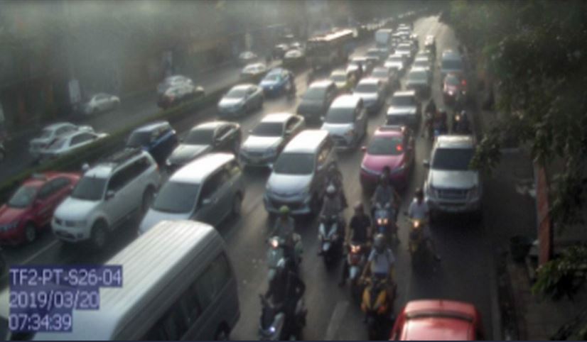 ถนนรามคำแหง ทั้งขาเข้า และขาออก ผ่านแยกลาดบัวขาว ยังเคลื่อนตัวได้ดี.-สำนักข่าวไทย