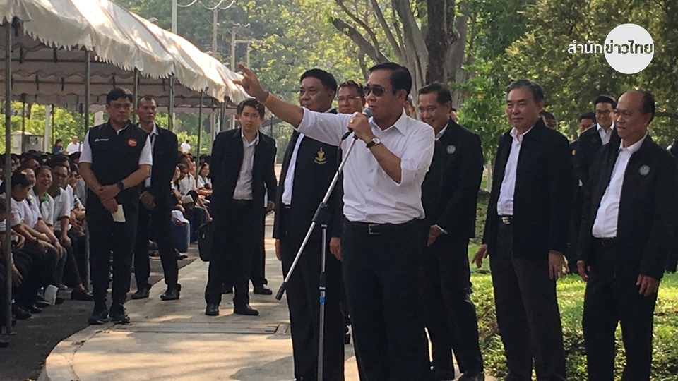 กรุงเทพฯ 20 มี.ค.-นายกรัฐมนตรี ตรวจราชการสวนป่าเบญจกิติ-โรงงานยาสูบ มีประชาชนมาต้อนรับและ ร้องเพลงแฮปปี้เบิร์ดเดย์ ให้ ย้ำอย่าให้ใครมาสร้างความเกลียดชังระหว่างประชาชนด้วยกัน ใครทำถือว่าทำลายประเทศ