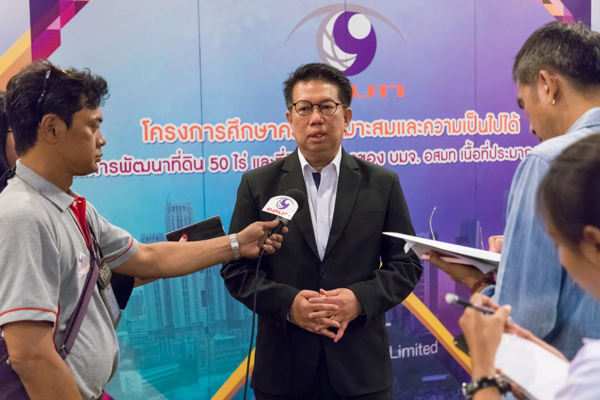 นายเขมทัตต์ พลเดช กรรมการผู้อำนวยการใหญ่ บริษัท อสมท จำกัด (มหาชน) กล่าวถึงความคืบหน้าของโครงการศึกษาความเหมาะสมและความเป็นไปได้ในการพัฒนาที่ดิน 50 ไร่ และที่ดินที่ทำการของ บมจ.อสมท เนื้อที่ประมาณ 20 ไร่ ว่า “การพัฒนาที่ดินทั้งสองแปลงดำเนินการตามขั้นตอนของพระราชบัญญัติว่าด้วยการให้เอกชนร่วมลงทุน พ.ศ. 2556 (PPP) ซึ่ง บมจ.อสมท ได้ว่าจ้างให้สำนักงานศูนย์วิจัยและให้คำปรึกษาแห่งมหาวิทยาลัยธรรมศาสตร์ เป็นผู้ดำเนินการศึกษาความเหมาะสม และความเป็นไปได้ในการพัฒนาที่ดินทั้งสองแปลง และขณะนี้ได้ดำเนินการมาถึงขั้นตอนการรับฟังความคิดเห็นครั้งที่ 2 (Public Hearing ครั้งที่ 2) เพื่อนำเสนอความก้าวหน้าของการศึกษาและรูปแบบ ที่เป็นไปได้ของการพัฒนาพื้นที่ พร้อมทั้งให้ทุกภาคส่วนที่เกี่ยวข้อง ประชาชนและชุมชนที่อยู่โดยรอบที่ดิน ทั้งสองแปลง รวมถึงนักลงทุนได้แสดงความคิดเห็นและข้อเสนอแนะเกี่ยวกับแนวทางเลือกในการลงทุนและการวิเคราะห์ความเป็นไปได้ของโครงการพัฒนาอสังหาริมทรัพย์”