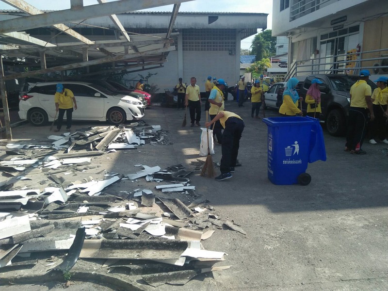 วันนี้ (21 มี.ค.) พ.ต.อ.สนธยา ธูปทอง ผกก.สภ.เมืองสตูล พร้อมชุดเจ้าหน้าที่ร่วมกับเทศบาลเมืองสตูลและประชาชนจิตอาสา ร่วมทำกิจกรรมโครงการจิตอาสาเราทำความดีด้วยหัวใจ ทำความสะอาดบริเวณหน้า สภ.เมืองสตูล ซึ่งได้รับผลกระทบจากเหตุการณ์ระเบิด 2 ลูก เมื่อวันที่ 9 มี.ค.ที่ผ่านมา ไม่มีผู้บาดเจ็บ แต่ทำให้กำแพงรั้ว กระจกห้องสืบสวน และห้องธุรการเสียหาย