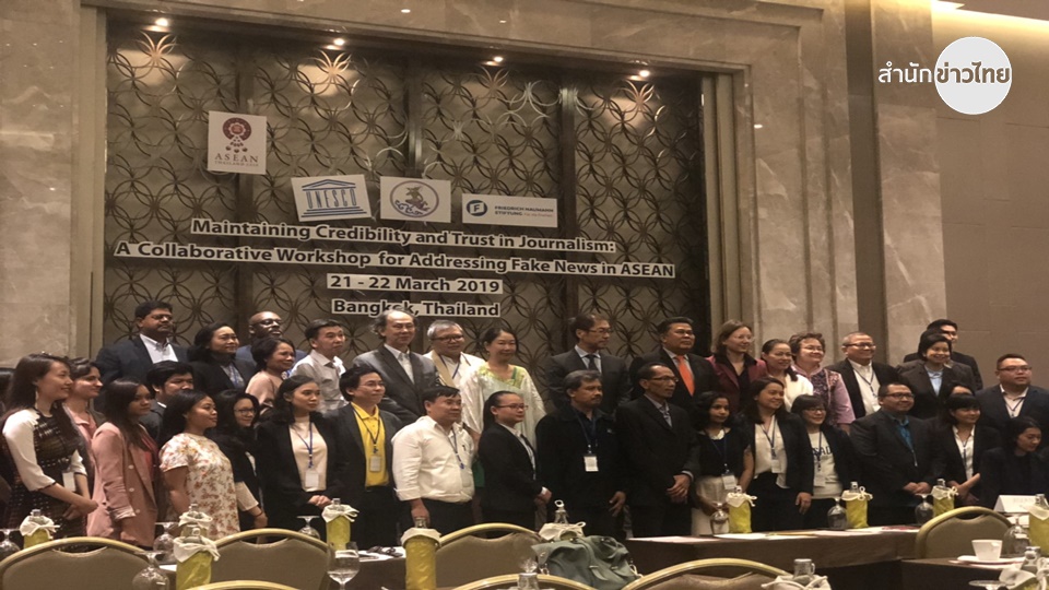 กรมประชาสัมพันธ์ ร่วมกับ สำนักงานยูเนสโก ประจำประเทศไทย จัดประชุมเชิงปฏิบัติการส่งเสริมการรู้เท่าทันสื่อระดับภูมิภาค “Maintaining Credibility and Trust in Journalism : A Collaborative Workshop for Addressing Fake News in ASEAN” ระหว่างวันที่ 21-22 มีนาคม 2562 เพื่อเเลกเปลี่ยนข้อมูล มาตรการ ประสบการณ์การรับมือกับข่าวลวง เเนวปฏิบัติการรณรงค์ การใช้สื่ออย่างสร้างสรรค์เเละเพิ่มพูนความรู้จากวิทยากรผู้เชี่ยวชาญทั้งชาวไทยเเละต่างชาติ รวมถึงการสร้างเครือข่ายเพื่อเป็นพลังในการลดผลกระทบจากข่าวลวงเเละเป็นกลไกสำคัญของภูมิภาคในการสร้างความรู้ให้กับประชาชน โดยมีสื่อมวลชนไทยเเละต่างชาติเข้าร่วมประชุมเป็นจำนวนมาก รวมถึงนายพีรพล อนุตรโสตถิ์ ผู้ผลิตเเละพิธีกรรายการชัวร์ก่อนเเชร์จากสำนักข่าวไทย อสมท เข้าร่วมงานเเละร่วมเสวนาในหัวข้อมุมมองของผู้ทำข่าว