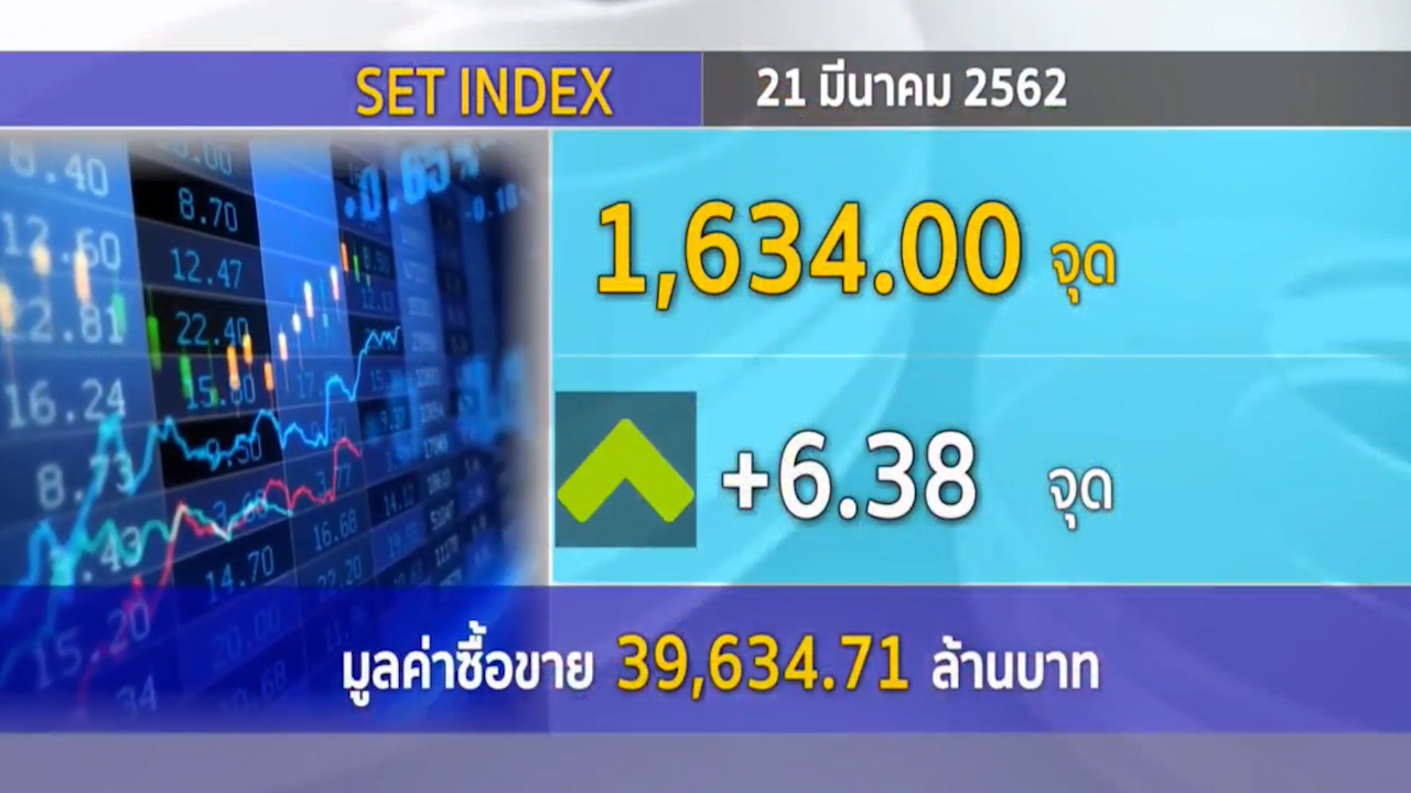 กทม. 21 มี.ค.- ตลาดหุ้นไทย (21 มี.ค.) ปิดการซื้อขายที่ 1,634.00 จุด บวก 6.38 จุด มูลค่าการซื้อขาย 39,364.71 ล้านบาท.-สำนักข่าวไทย