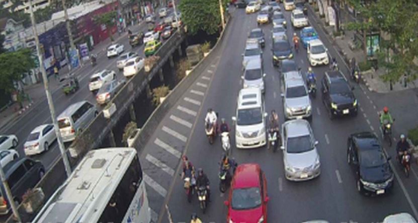 ถนนเพชรบุรี ขาออก แยกมิตรสัมพันธ์ มุ่งหน้าแยกอโศก-เพชรบุรี รถมาก เคลื่อนตัวช้า