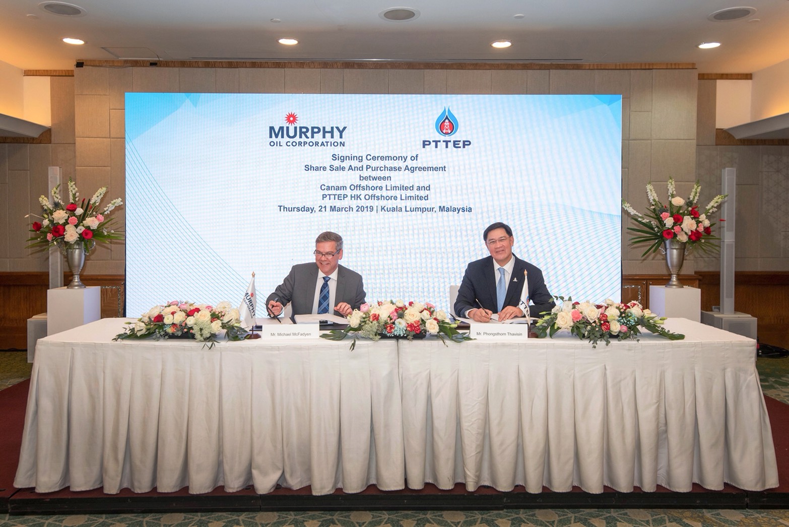 นายพงศธร ทวีสิน ประธานเจ้าหน้าที่บริหารและกรรมการผู้จัดการใหญ่ บริษัท ปตท.สำรวจและผลิตปิโตรเลียม จำกัด (มหาชน) หรือ ปตท.สผ. เปิดเผยว่า บริษัท พีทีทีอีพี เอชเค ออฟชอร์ จำกัด (PTTEP HK Offshore Limited) หรือ พีทีทีอีพี เอชเคโอ ซึ่งเป็นบริษัทย่อยของ ปตท.สผ.ได้ลงนามในสัญญาซื้อขายหุ้น ทั้งหมดในบริษัทย่อยของเมอร์ฟี่ ออยล์ คอร์ปอเรชั่น ได้แก่ บริษัท เมอร์ฟี่ ซาบาห์ ออยล์ จำกัด และบริษัท เมอร์ฟี่ ซาราวัก ออยล์ จำกัด การเข้าซื้อกิจการครั้งนี้ครอบคลุมแหล่งน้ำมันและแหล่งก๊าซธรรมชาติ 5 โครงการ ได้แก่ โครงการซาบาห์ เค, โครงการเอสเค 309 และเอสเค 311, โครงการซาบาห์ เอช, โครงการเอสเค 314 เอ และโครงการเอสเค 405 บี รวมทั้งสินทรัพย์ต่าง ๆ ทั้งนี้ ปตท.สผ.ได้ใช้เงินจากกระแสเงินสดของบริษัทในการเข้าซื้อกิจการ โดยคาดว่าการซื้อขายจะเสร็จสมบูรณ์ภายในไตรมาส 2 ปี 2562