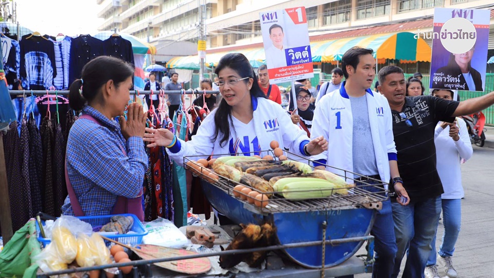 คุณหญิงสุดารัตน์ เกยุราพันธุ์ ประธานยุทธศาสตร์การเลือกตั้งพรรคเพื่อไทย ลงพื้นที่ช่วยนายวิตต์ ก้องธรนินทร์ ผู้สมัคร ส.ส.กรุงเทพมหานคร หาเสียงที่ตลาดนัดหมู่บ้านเสรี พบปะพูดคุยกับพ่อค้าแม่ค้าและประชาชนที่มาจับจ่ายใช้สอย ขอให้ประชาชนเลือกพรรคเพื่อไทยให้ถล่มทลายเพื่อให้ได้เป็นแกนนำจัดตั้งรัฐบาลและได้คะแนนเสียงมากกว่าสว.250 คน