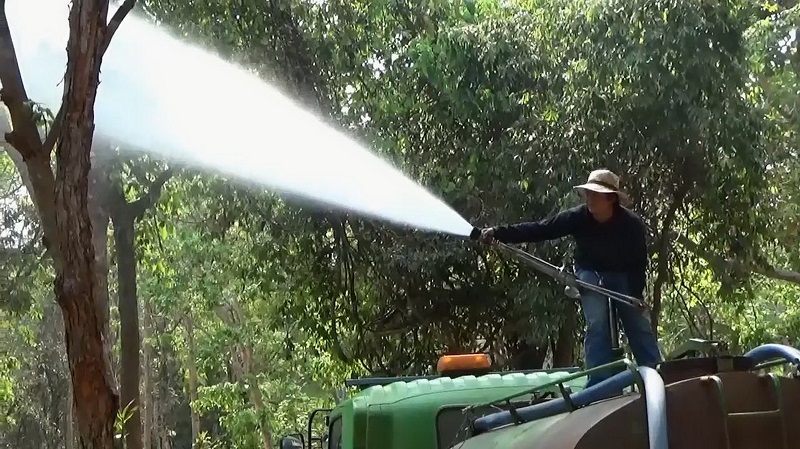 บริเวณทางเดินเข้าชมในส่วนการแสดงสัตว์ เพื่อลดอุณหภูมิให้ทั้งนักท่องเที่ยวและสัตว์ป่าที่อาศัยปืนป่ายอยู่ตามต้นไม้บริเวณดังกล่าว
