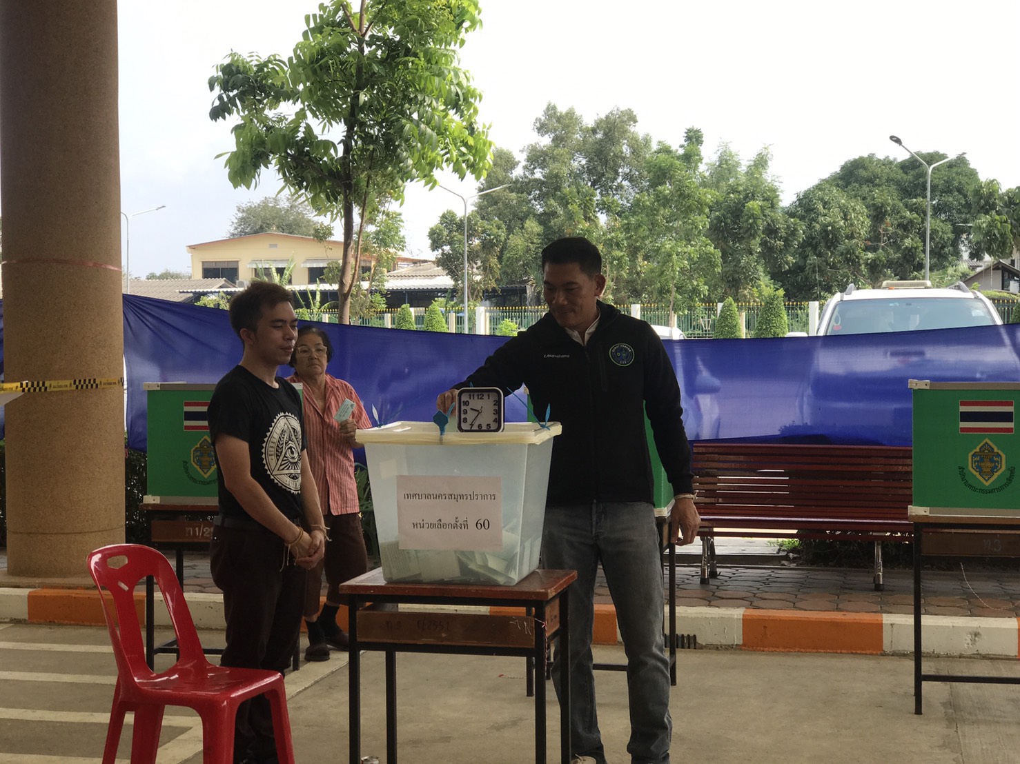 สมุทรปราการ 24 มี.ค.-นายชนม์สวัสดิ์ อัสวเหม ประธานหอการค้าจ.สมุทรปราการ พร้อมผู้ติดตามควบบิ๊กไบค์ มาเข้าคูหาเลือกตั้ง ส.ส.เขต1 ที่หน่วยเลือกตั้งที่ 60 ซึ่งตั้งอยู่ภายในโรงเรียนราฟาแอล ต.ปากน้ำ อำเภอเมืองสมุทรปราการ