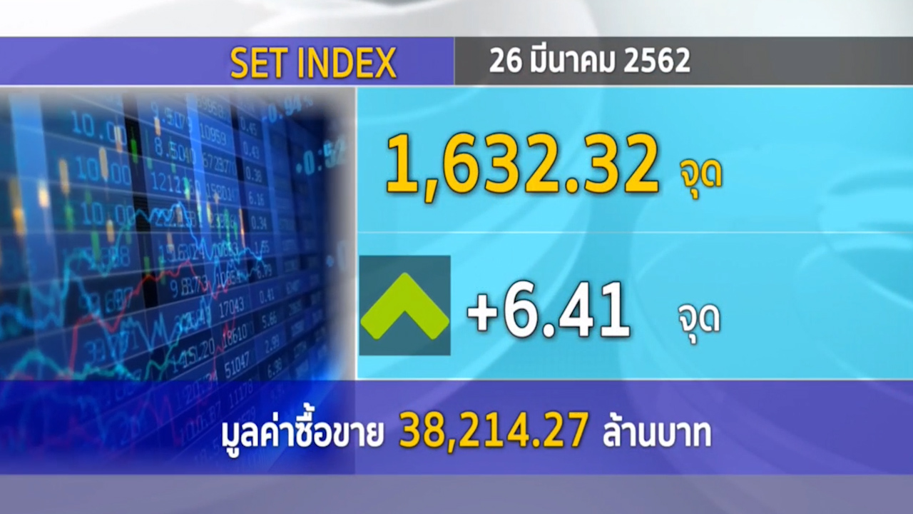 กทม. 26 มี.ค.- ตลาดหุ้นไทย (26 มี.ค.) ปิดการซื้อขายที่ 1,632.32 จุด บวก 6.41 จุด มูลค่าการซื้อขาย 38,214.27 ล้านบาท.-สำนักข่าวไทย
