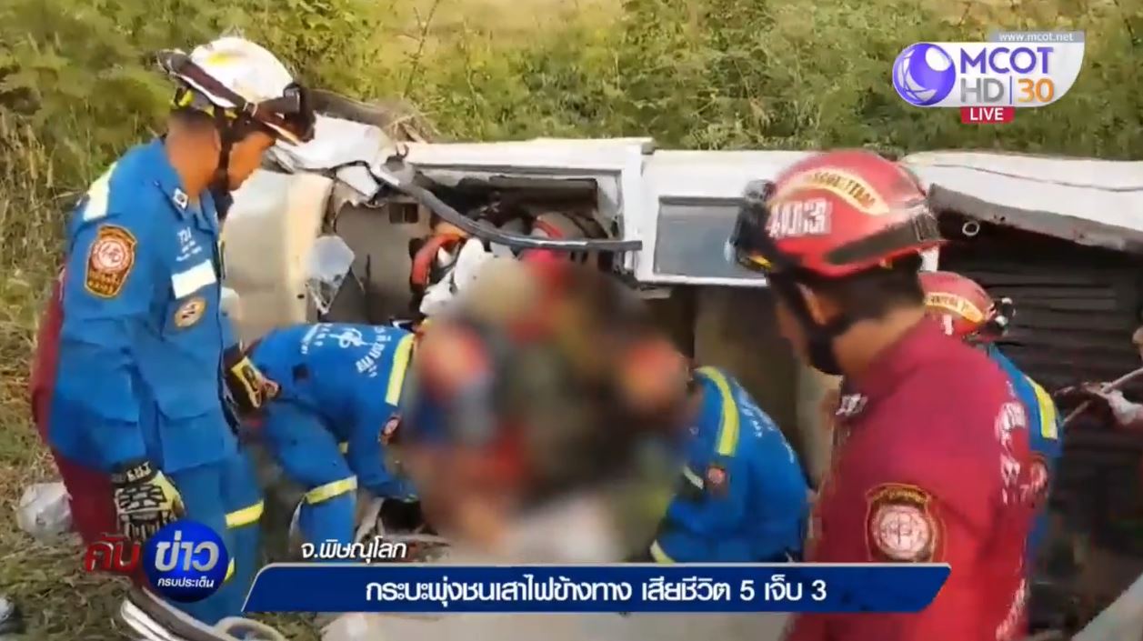 พิษณุโลก 26 มี.ค.-หนุ่มขอนแก่น ซิ่งกระบะหลับใน เสียหลักพลิกคว่ำตกถนน เสียชีวิตคาที่ 5 ราย บาดเจ็บ 3 ราย