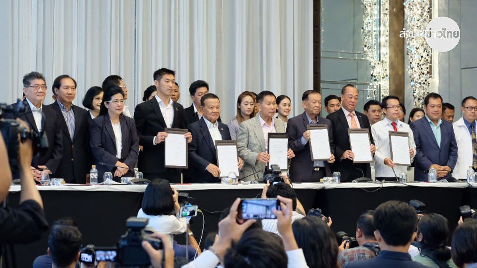 กรุงเทพฯ 27 มี.ค.- พรรคเพื่อไทยลงสัตยาบันร่วม 7 พรรคการเมืองรวมเสียงจัดตั้งรัฐบาล หยุดการสืบทอดอำนาจ คสช. เรียกร้อง กกต. เปิดเผยผลการนับคะแนน 100%