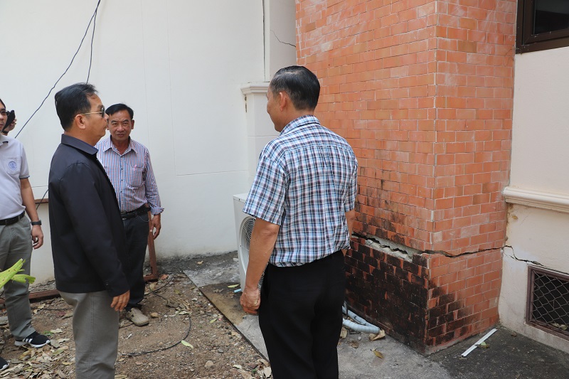 อธิบดีกรมอุตุนิยมวิทยายังได้ตรวจร่องรอยความเสียหายของฐานอาคาร อบต.ทุ่งฮั้ว ซึ่งเป็นอาคารสองชั้นเกิดรอยร้าวจากเหตุแผ่นดินไหว และยังมีรอยแตกร้าว จากนั้นไปตรวจพื้นที่บ้านห้วยกันทา ต.ทุ่งฮั้ว เป็นจุดศูนย์กลางของการเกิดแผ่นดินไหว ขนาด 4.9 พร้อมประชุมร่วมกับนายไพรัช ผมไผ ปลัดฝ่ายป้องกัน อ.วังเหนือ เจ้าหน้าที่สำนักงานป้องกันและบรรเทาสาธารณภัย จ.ลำปาง สาขาวังเหนือ ผู้นำชุมชน และชาวบ้านในพื้นที่ เพื่อให้ข้อมูลของการเกิดแผ่นดินไหว