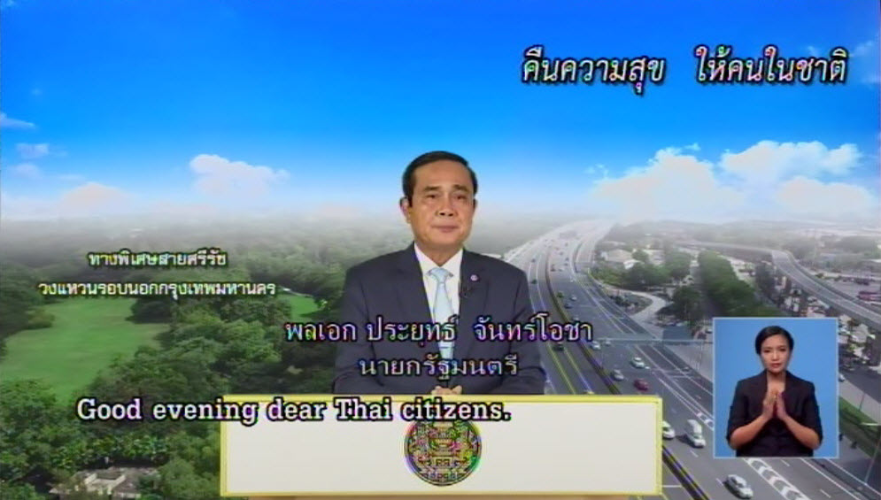 การดำเนินการดังกล่าวนั้น ผมว่าอาจจะต้องใช้เวลานะครับที่ผมทำมา 2 ปี ก็อาจจะสำเร็จได้ในระยะหนึ่งหรือระยะแรก บางอย่างก็เริ่มต้นได้ บางอย่างก็เข้าไปครึ่งทางแล้ว ทำนองนี้นะครับ อยากให้ทุกคนช่วยกันคิด ช่วยกันติดตามด้วย คือเราจะร่วมมือกันอย่างไรนะครับ จากทุกภาคส่วนตามแนวทาง “ประชารัฐ” อย่ามาขัดแย้งกันอีกเลย ท่านทำหน้าที่ของท่าน ตามภาระหน้าที่ของท่านไม่ว่าจะเป็นพันธะกรณีย์ หรือเป็นเรื่องสิทธิมนุษยชนของสากล ผมไม่ได้ขัดแย้งท่าน แต่ท่านก็อย่าลืมว่าสิ่งใดก็ตามที่ ทำให้เกิดผลกระทบต่อประเทศ หรือทำให้ประเทศนั้นมีปัญหานี่ ท่านก็ต้องคำนึงถึงประเทศชาติด้วยนะครับ อยากให้มองประเทศชาติมาก่อน ในส่วนของการแก้ไข อะไรที่ไม่ถูกต้องก็มาว่ากันผมก็พร้อมจะแก้ไขให้ได้ ไม่ใช่เอาประเทศไปประจานในสิ่งที่บางครั้งก็ไม่ใช่เรื่องที่เป็นข้อเท็จจริงนะครับ