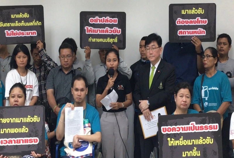 ด้าน นางสาวเครือมาศ ศรีจันทร์ ผู้ประสานงานเครือข่ายพัฒนาคุณภาพชีวิต กล่าวว่า วันนี้ เครือข่าย ได้ยื่นข้อเสนอให้อัยการสูงสุด ช่วยผลักดัน ให้มีการบังคับใช้กฎหมายอย่างจริงจังและเข้มข้น หลังพบยังมีอุบัติเหตุ ที่เกิดจากการเมาแล้วขับในช่วงเทศกาลต่างๆ เพิ่มขึ้น โดยเฉพาะในช่วงใกล้เทศกาลสงกรานต์ และยังเป็นสาเหตุหลักคร่าชีวิต คนบริสุทธิ์ ไปจำนวนมาก โดยเครือข่ายฯ ได้เรียกร้อง และขอให้อัยการสูงสุด พิจารณาขอเสนอ รวม 3. ประการคือ ขอให้อัยการฟ้องคดี กับผู้ที่เมาแล้วขับสถานหนัก เพราะถือว่าเป็นการกระทำโดยเจตนาอ้างไม่ได้ว่าไม่ได้ตั้งใจ เพราะการดื่มสุราเป็นการตั้งใจดื่ม และตั้งใจขับขี่ทั้งทั้งที่รู้ว่าเมาสุราอยู่ ในกรณีที่ผู้เมาแล้วขับมีการทำผิดซ้ำซาก ขอให้อัยการมีคำท้ายฟ้องต่อศาลขอให้บวก และเพิ่มโทษให้หนักขึ้น และขอให้ อัยการ สั่ง พนักงานสอบสวน เจ้าของคดีสืบค้นไปถึงแหล่ง ต้นตอ การเมาแล้วขับ เช่น สถานที่ ร้านค้า จำหน่ายสุราให้ เพื่อลงโทษตามพ.ร.บ.เครื่องดื่มแอลกอฮอล์ และจะได้มีส่วนร่วมในการรับผิดชอบสังคมมากขึ้น