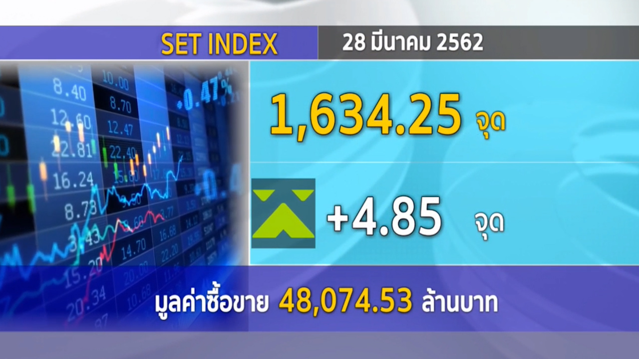 กทม. 28 มี.ค.- ตลาดหุ้นไทย (28 มี.ค.) ปิดการซื้อขายที่ 1,634.25 จุด บวก 4.85 จุด มูลค่าการซื้อขาย 48,074.53 ล้านบาท.-สำนักข่าวไทย