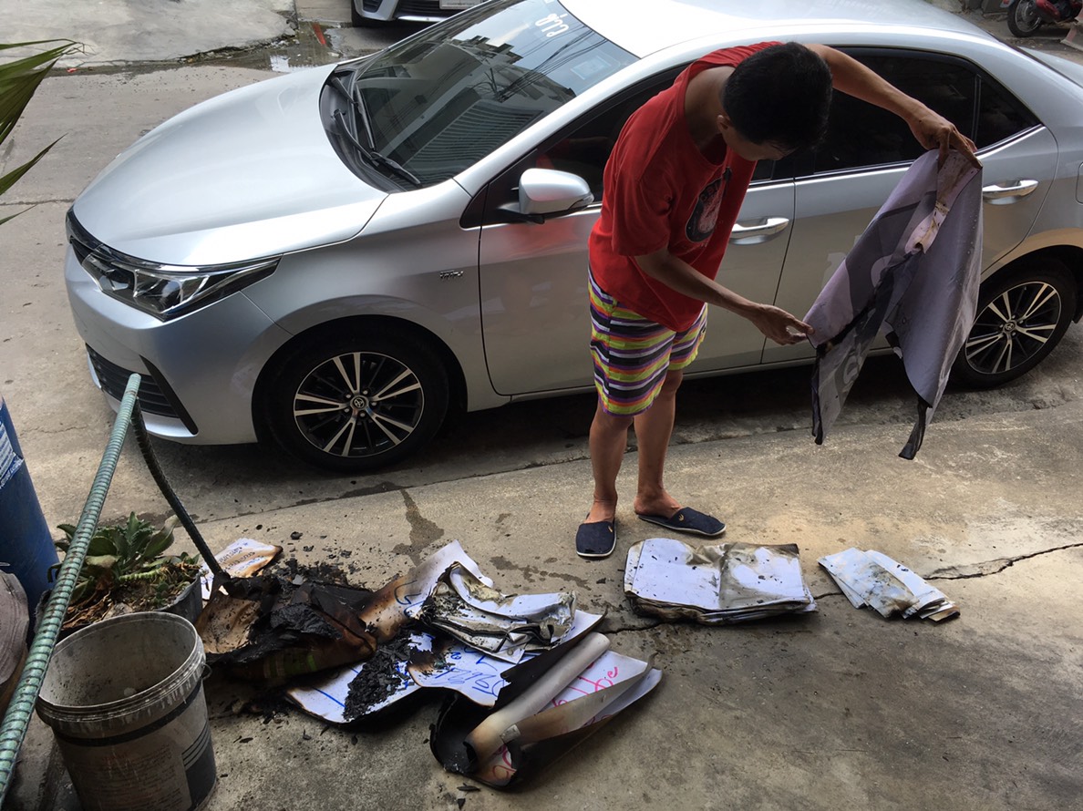 กทม. 1 เม.ย.-ตำรวจเร่งสืบหามือราดน้ำมันจุดไฟเผารถนักเคลื่อนไหวทางการเมือง ซอยลาดพร้าว 109 เสียหาย